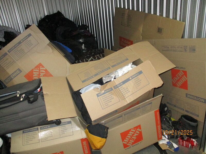 Le contenu doit être COMPLÈTEMENT ramassé. L’unité d’entreposage doit être complètement vidé dans un délai de 48 heures suivant la fermeture de la vente aux enchères. TOUT contenu laissé, alors le dépôt ne sera pas remboursé.