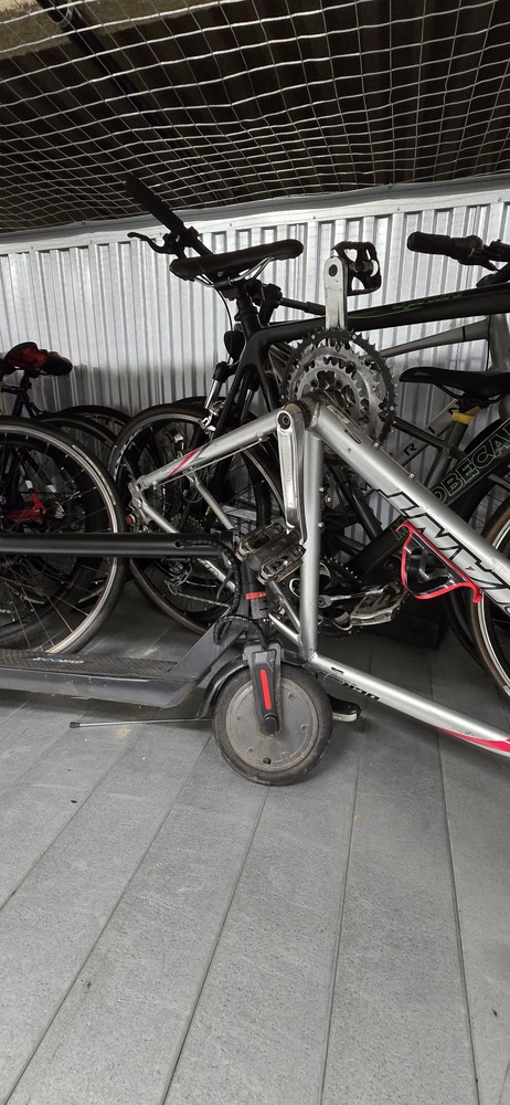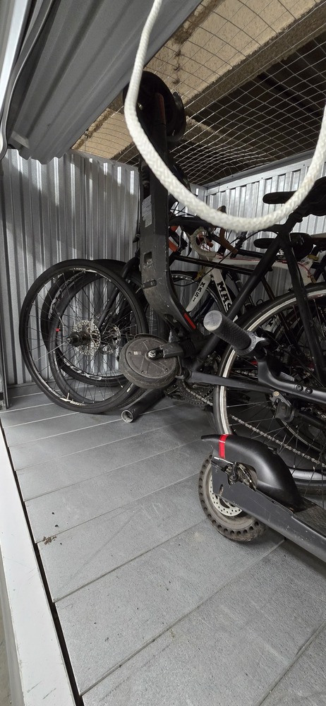 8 bicycles, 2 electric scooters, misc. tools, air compressor