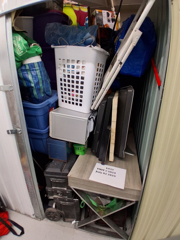 This 5x10 unit will close on November 5 2025 at 10am and must be paid for within 24 hours of the closing bid during store hours and emptied within 48 hours of the closing bid during store hours. No Exceptions. ** PALLETS/SKIDS in the unit are not part of the auction sale and must be left in the unit.