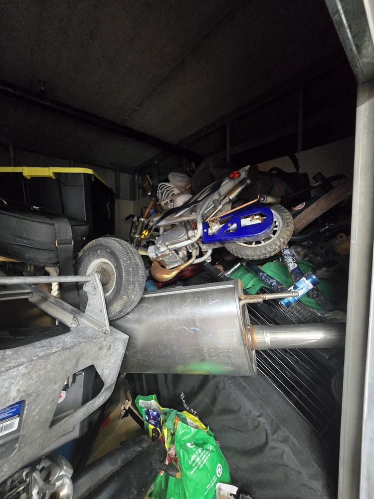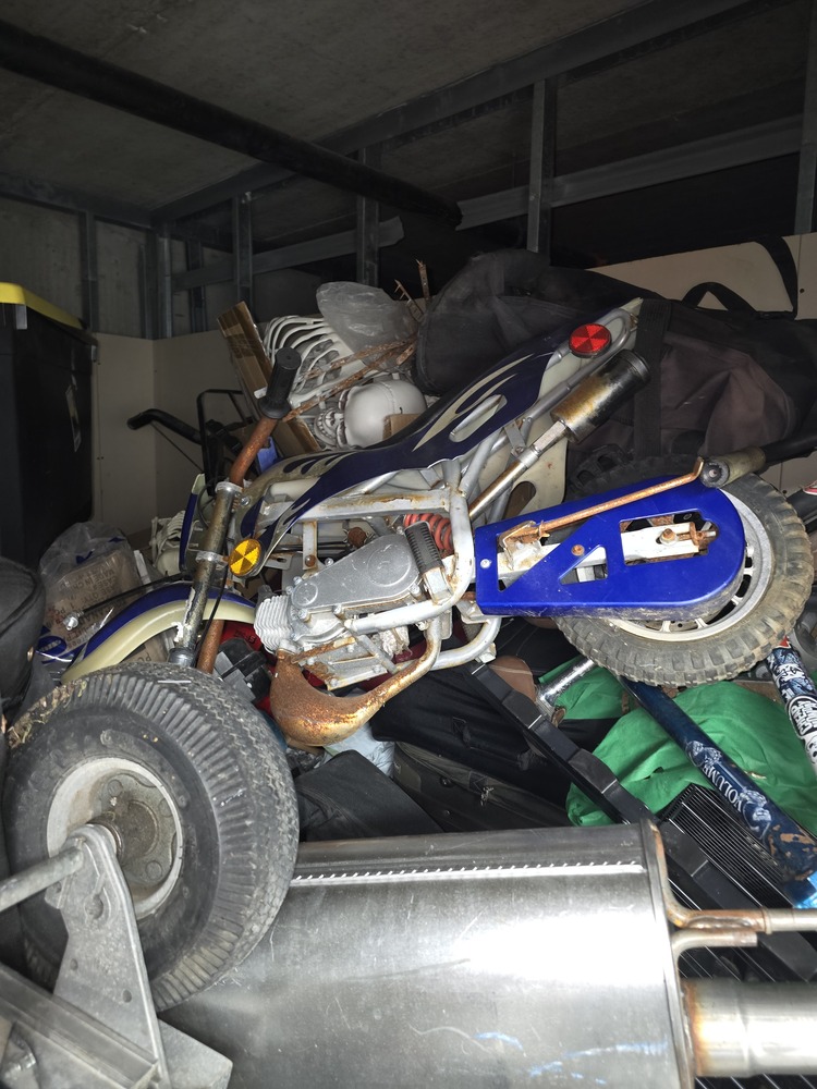 With some storage facilities, depending on State Lien Laws, Any vehicles found in the storage unit will be towed, and are not subject to the auction sale. The seller may or may not have legal title of vehicle, and a local towing company will remove the vehicle and take responsibility for impound.  Please call the storage facility to confirm prior to bidding.