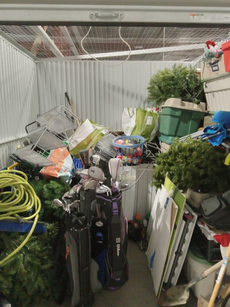 Golf Clubs, totes, Christmas trees, Tools, Shovels, Grass Trimmer, hose, Shelves, Ski's, Sports balls, umbrellas ETC.