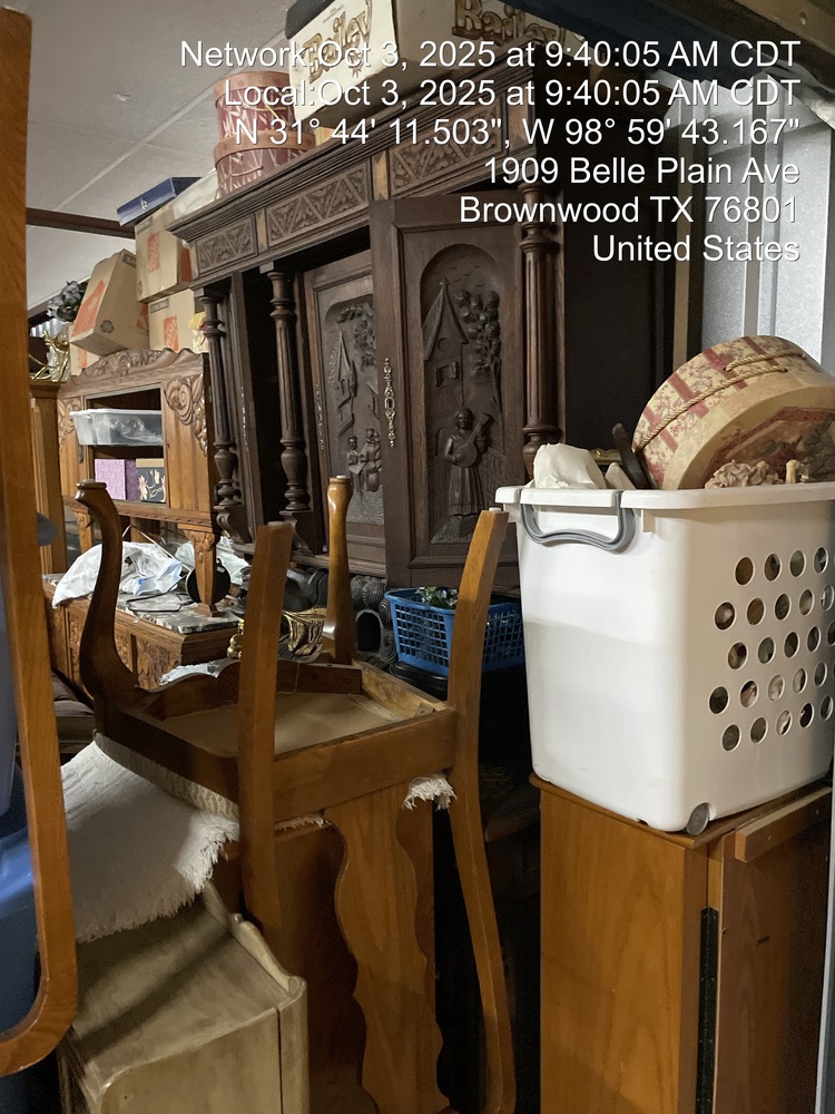 Hutch, Dresser, Buffet, Chairs, Totes, Chandelier, TVs, Rug, Mirror, Map, Fan, Fridge, Desk, Hat box, Boxes. Misc. items