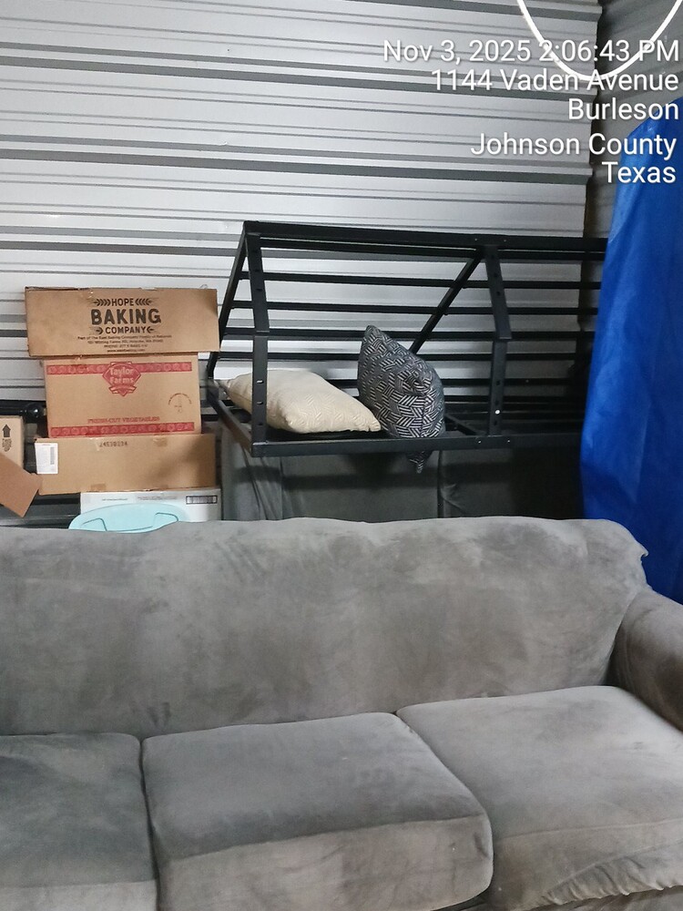 Totes, Computer desk, Curtain rod, Couch, Loveseat, Misc. items