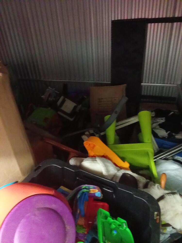 Boxes and totes, clothing, childrens games and toys, lamps, rocking horse, turtle table, kids ATV, misc furniture, dresser