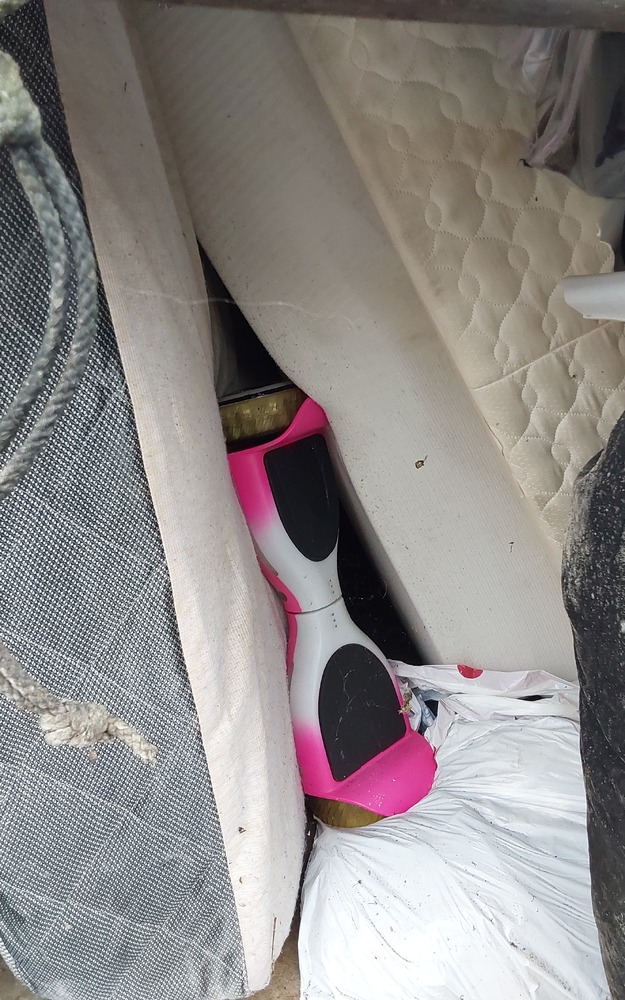 unit may contain furniture, big car sub speaker, hover board, mics. household & kid items