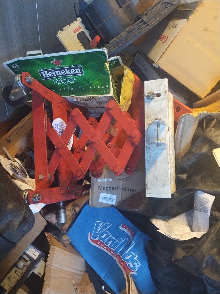 unit may contain a motor, tires, jack, shop vac, old computer, keyboard