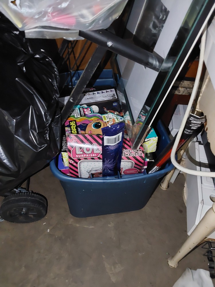 MAY CONTAIN BINS BAGS AND FURNITURE