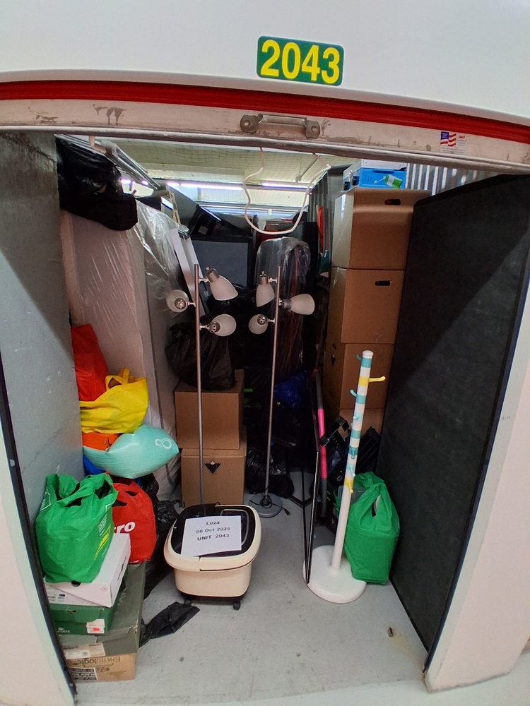 This 10 x 20 unit will close on December 9, 2025 at 10 a.m. and must be paid for within 24 hours of the closing bid during office hours and emptied within 48 hours of the closing bid during office hours. No Exceptions.