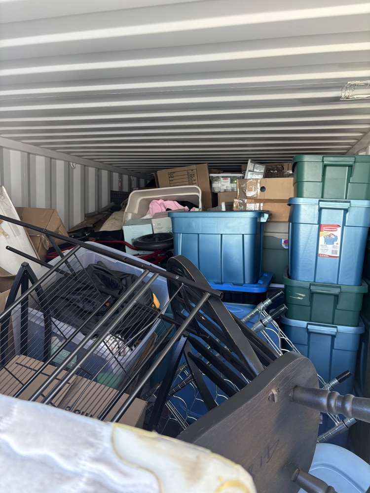 All items inside this BSB Container are up for auction. Which is loaded with what we believe to be household items, boxes/totes, furniture, a box spring and other miscellaneous items
