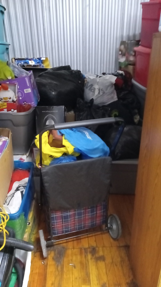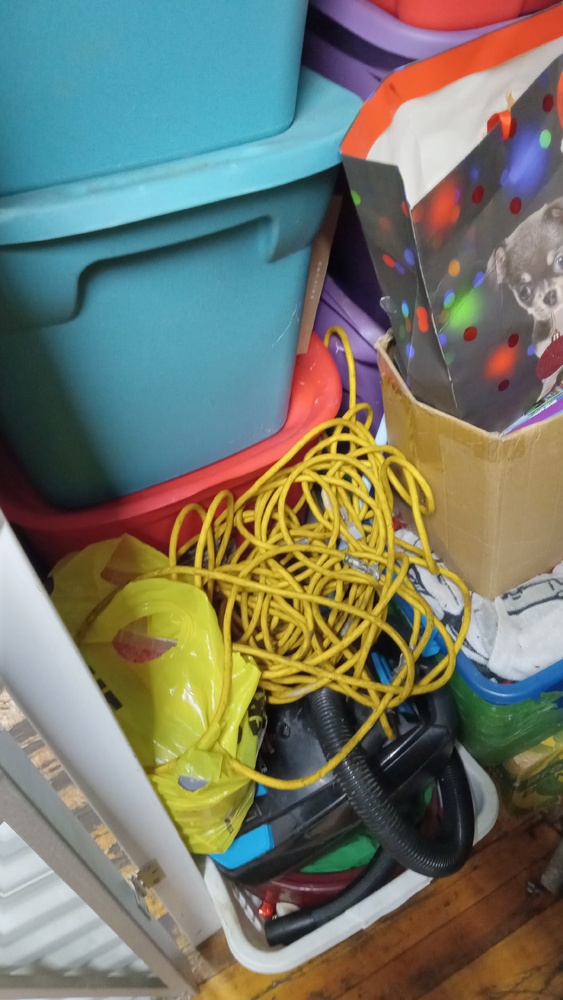 vacuum, toys, coffee machine, totes, garbage bags, cart ,etc.