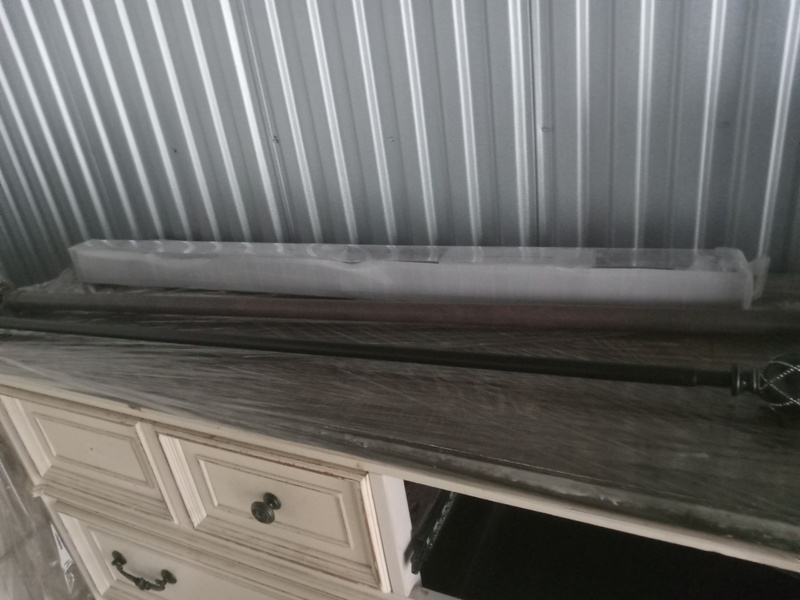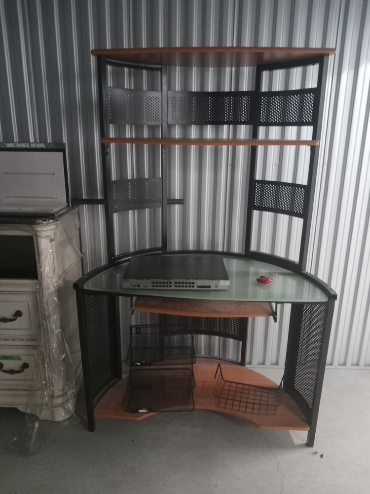 curtain rods x3, glass top computer desk,computer parts(network hub), upright fan,cabinet,2 dressers, bed rails,exercise bike, decor, clothing, watch, camera,usb,phone charging cables, Michael Kors display