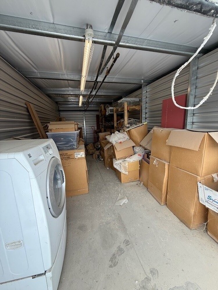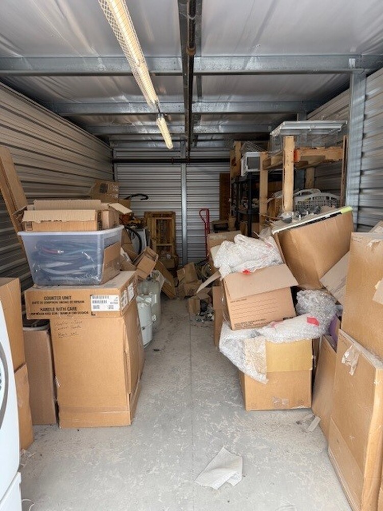 10x25 Direct Drive - Up Unit containing shelving and boxes