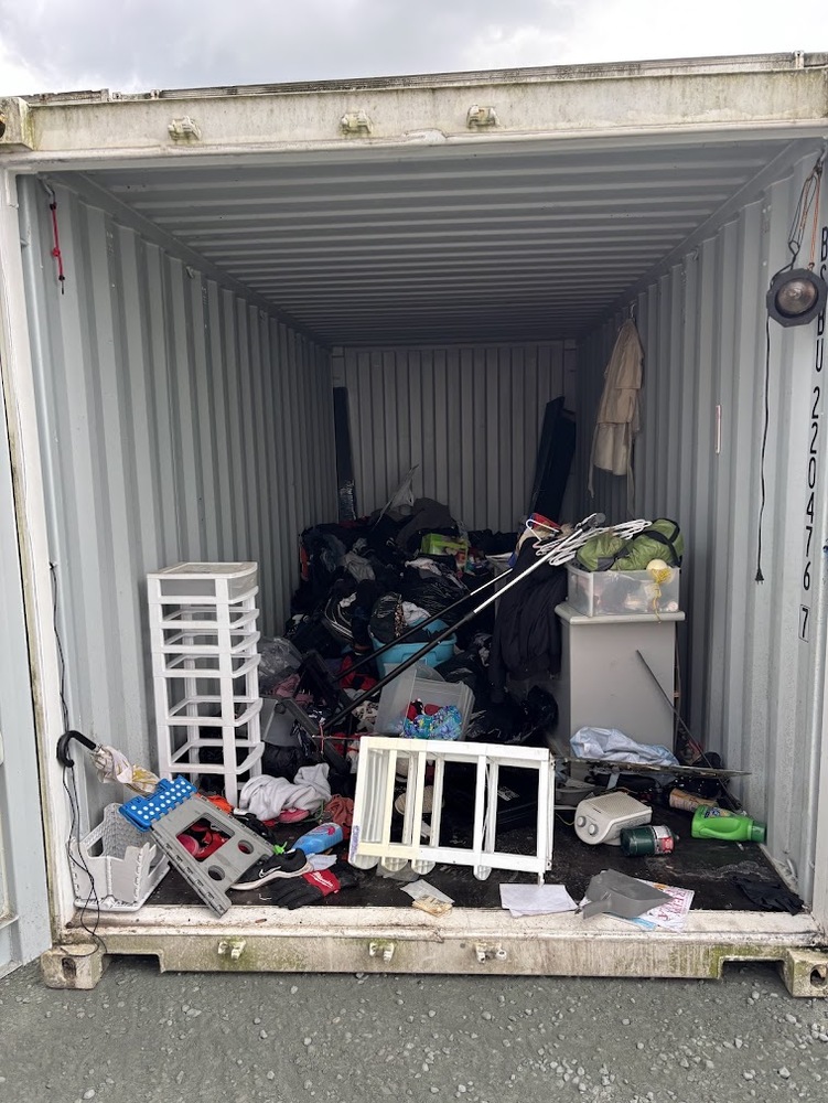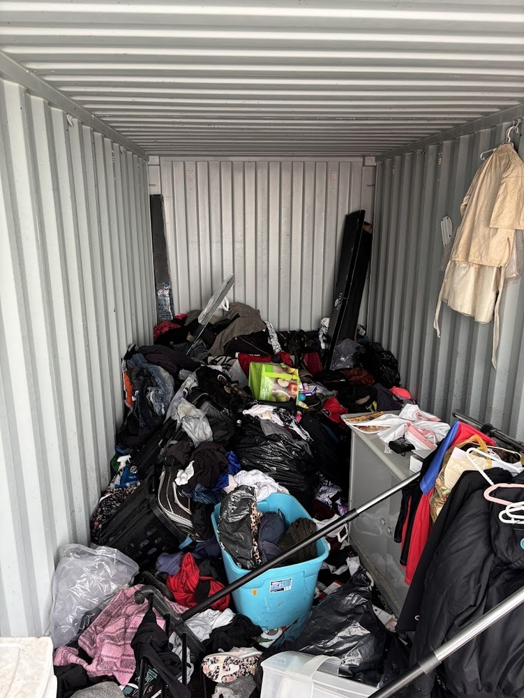 All items inside this 20' BSB containers are up for auction. Which is loaded with what we believe to be furniture, a clothing rack, clothing, suitcases, and other miscellaneous items