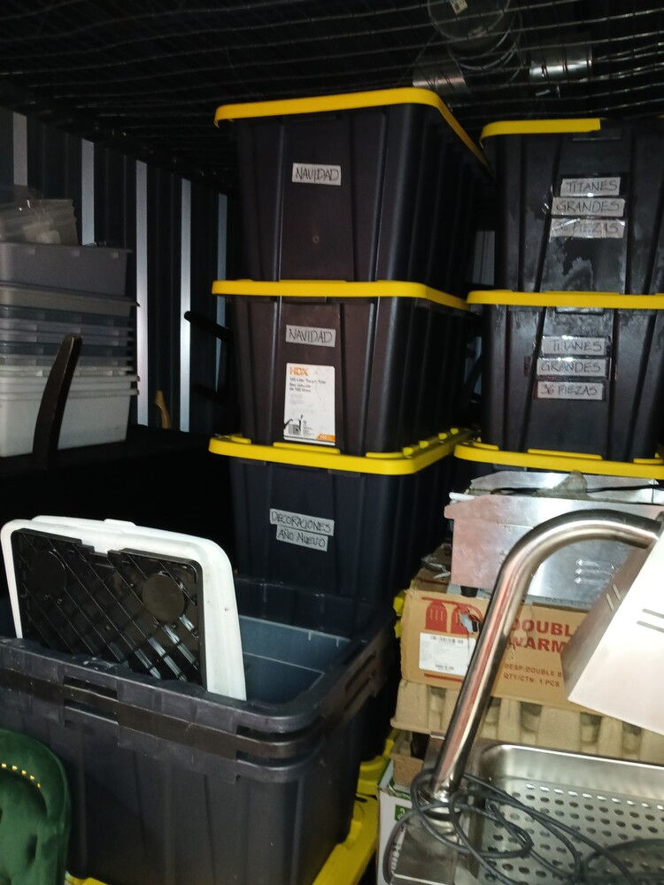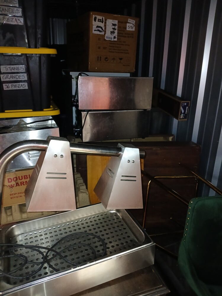 Bins, Chairs, food warmers, food heading lamps, couch, trays, boxes, furniture, ETC, ETC.