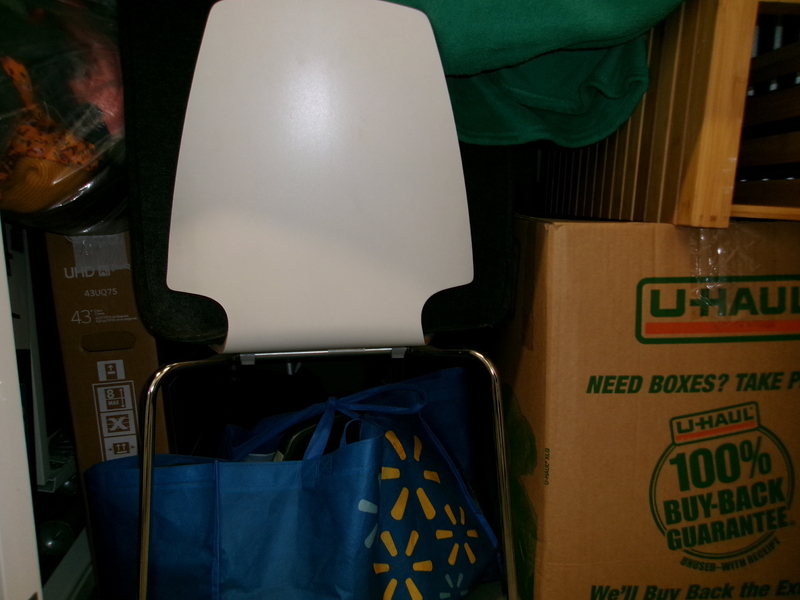 TV, chair, boxes, wooden shoe rack, bag, suitcase
