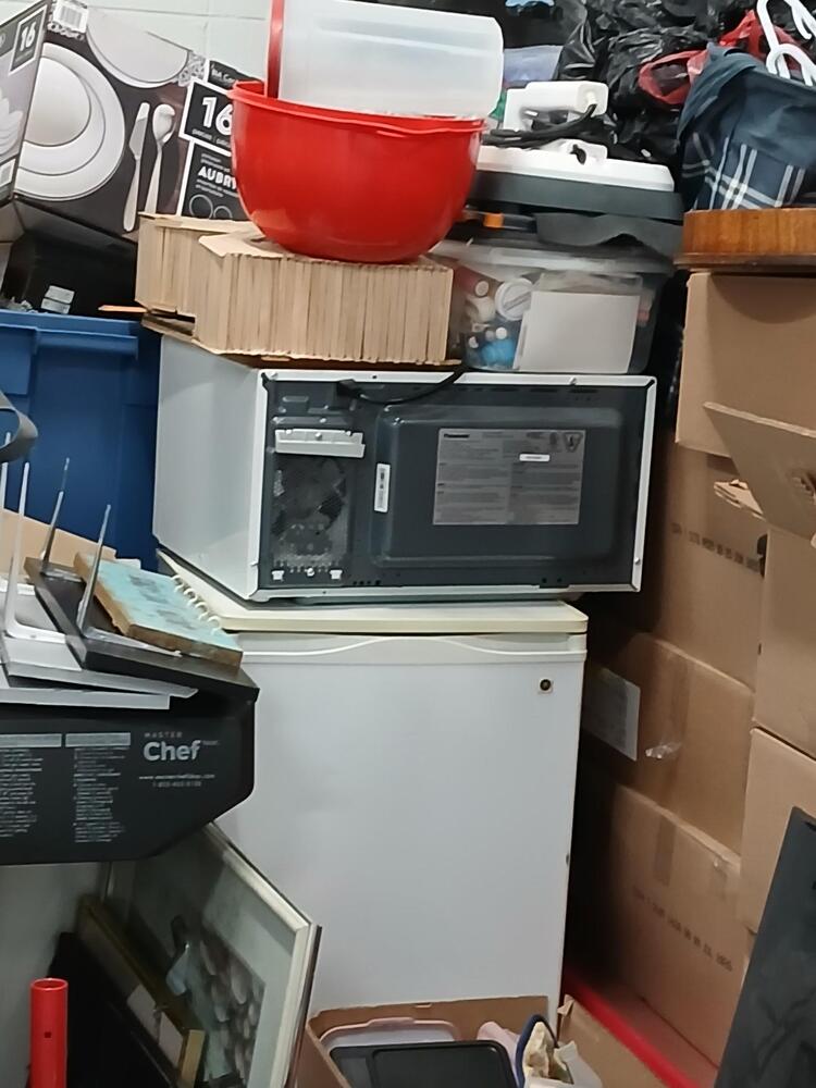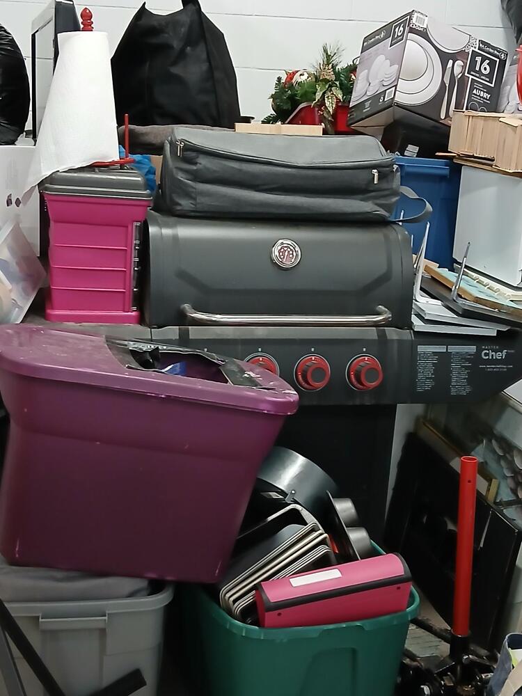 3 TVs, Tool Box BBQ, Tables, Bar fridge, Bags, Totes, Bake ware, Art, Soundbar, microwave