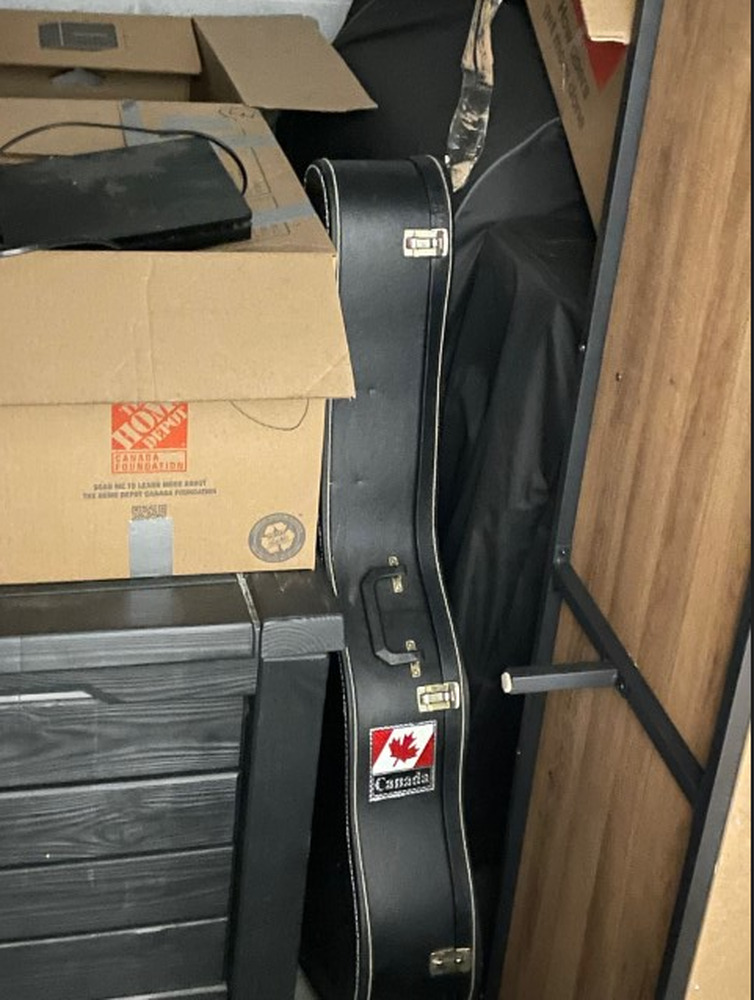 Neatly packed unit. Guitar case, maybe a guitar inside???