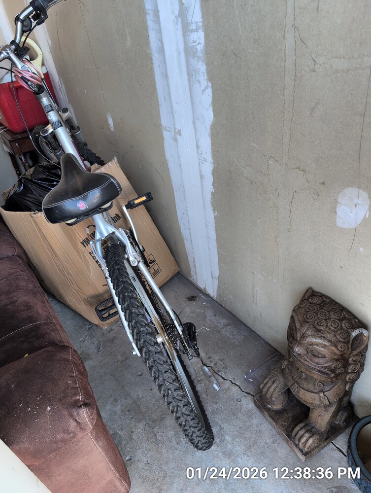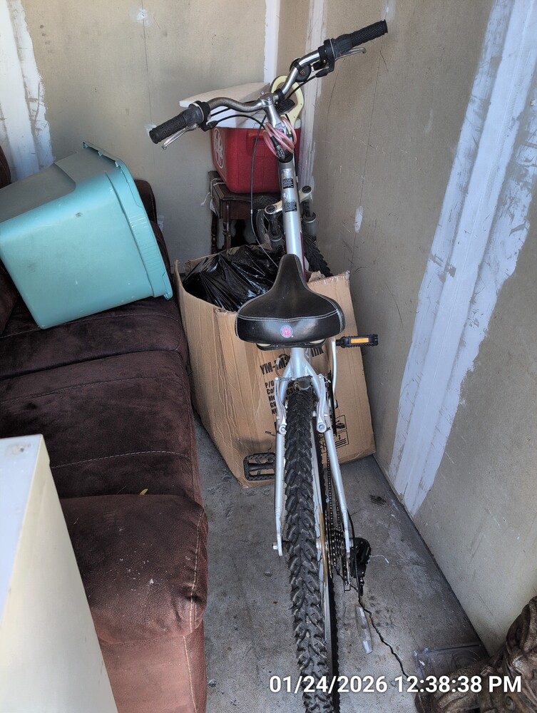bike, couch, dresser, end table, misc boxes/tote/bag