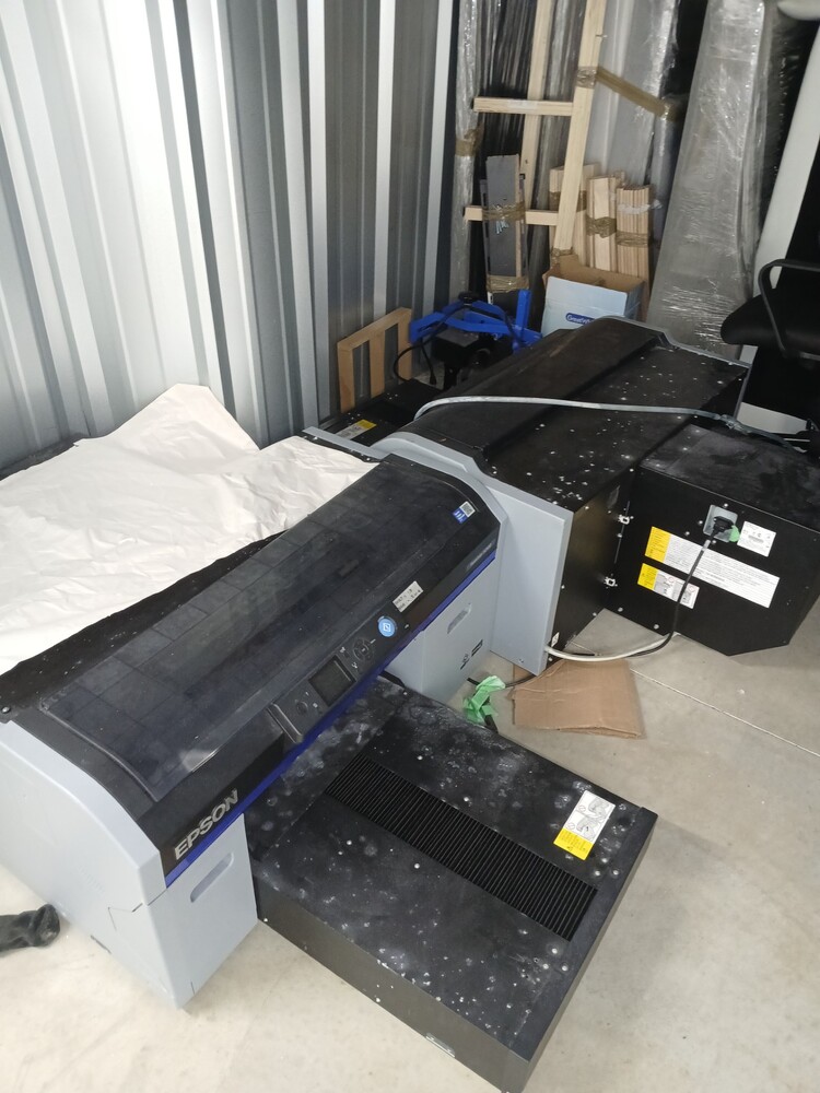 Poker table, chairs, leather couch, bed frame, mattress, 2x large clothing printer ETC ETC