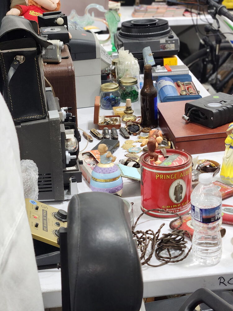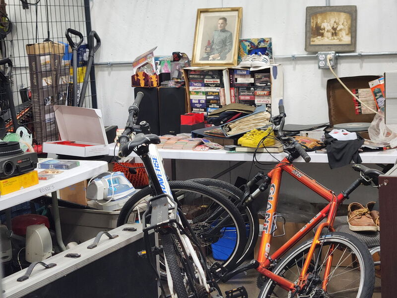 may contain bikes, paintings, tables, shoes, totes, projector, misc items