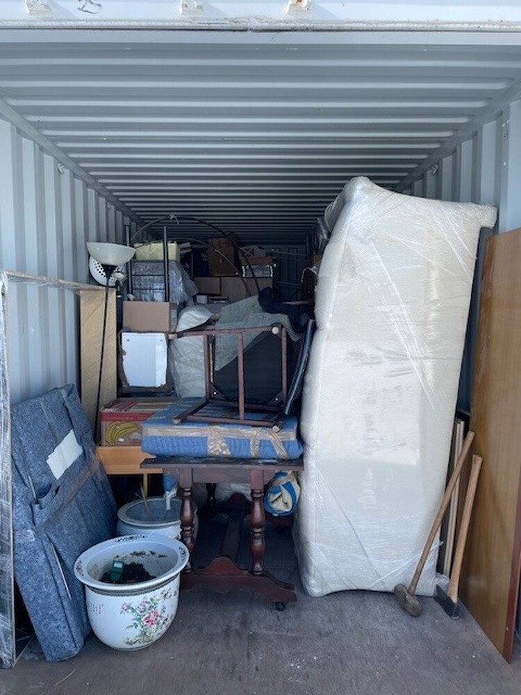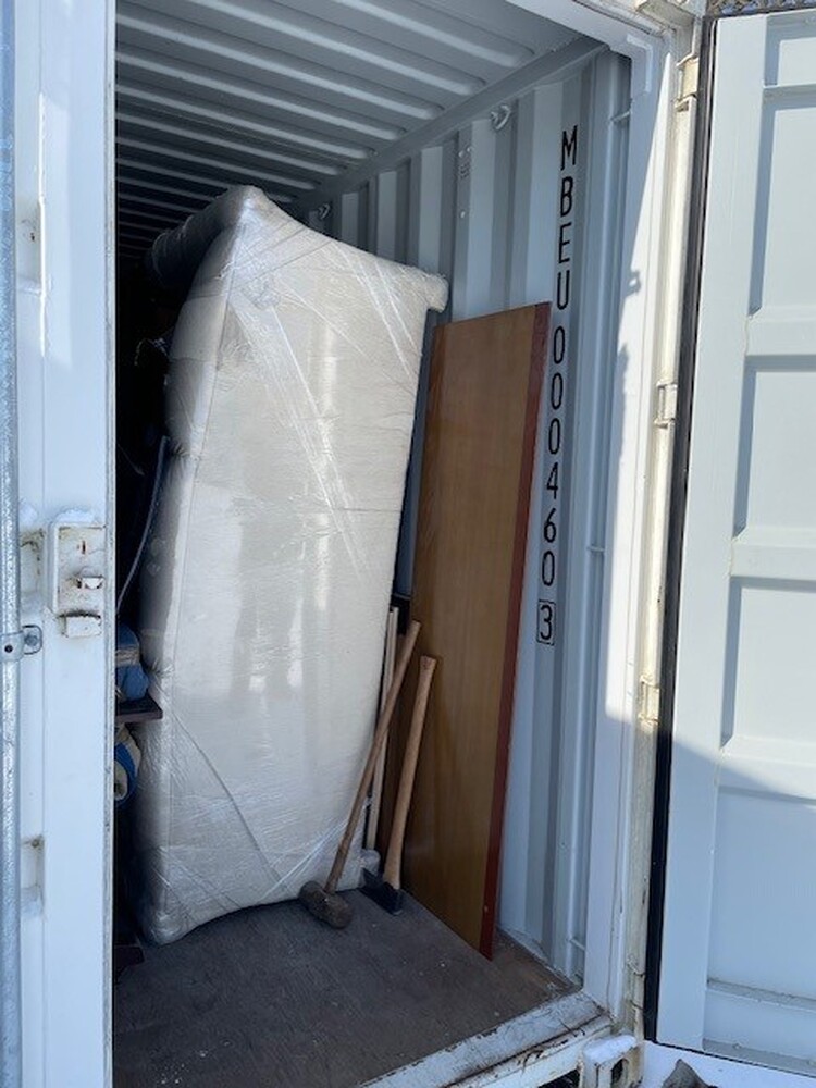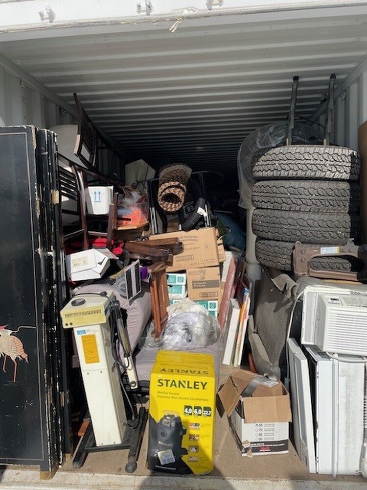All items inside the BigSteelBox containers are up for auction, which is loaded with what we believe to be furniture, tires, AC units, boxes, filing cabinet, and other miscellaneous items