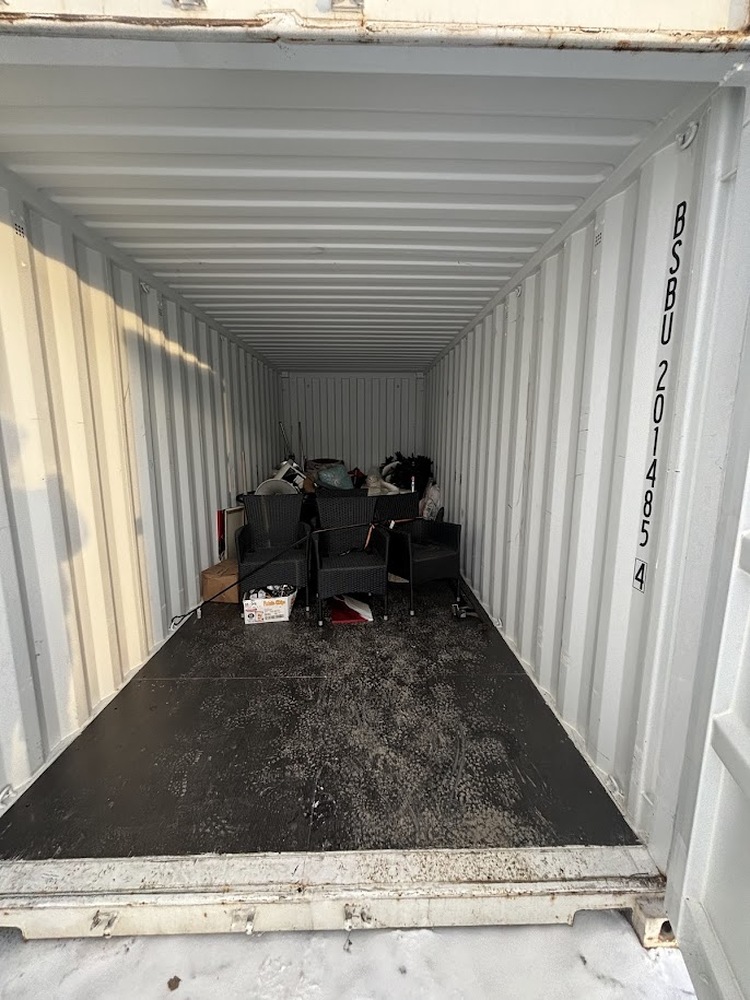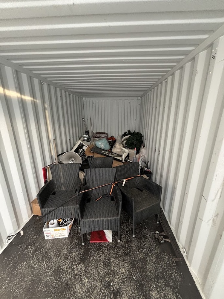 All items inside these 2 (TWO) -- 20' Containers -- Unit #'s BSBU2840305 and BSBU2014854 are up for auction. Which are loaded with what we believe to be patio furniture, bar stools, a couch, boxes and totes, and other miscellaneous items