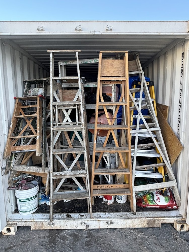 All items inside these 3 (THREE) -- 20' Containers -- Unit #'s BSBU2992226, BSBU2023265, and BSBU2202147 are up for auction. Which are loaded with what we believe to be a filling cabinet, tools, totes, multiple ladders, scaffolding, construction equipment, and other miscellaneous items