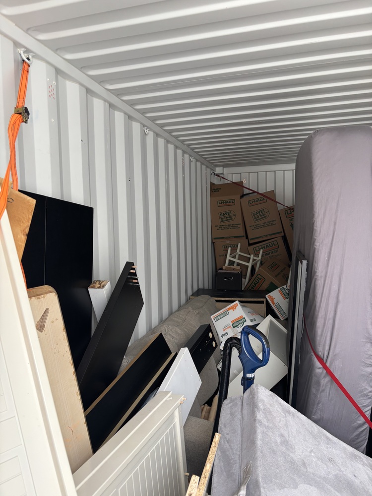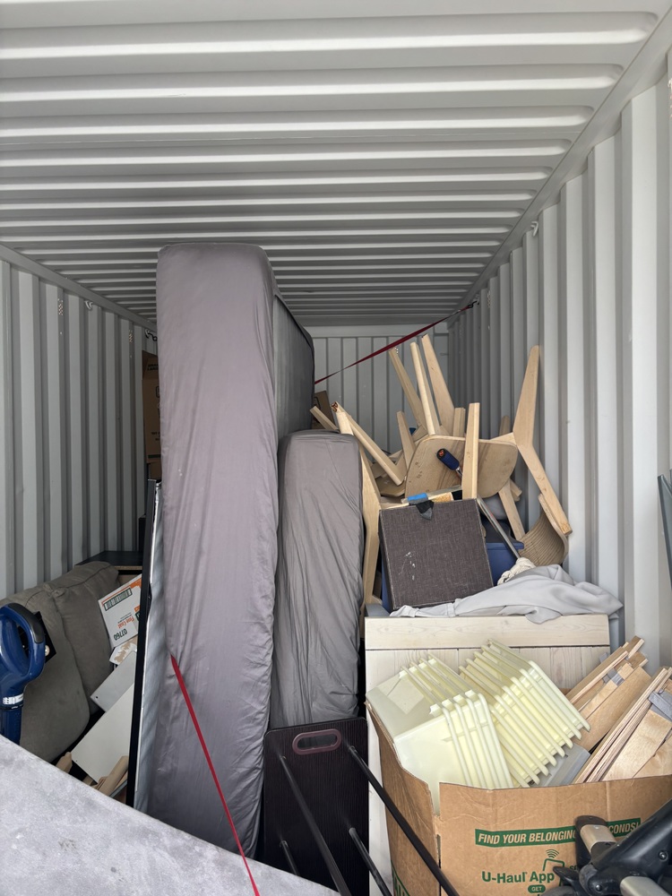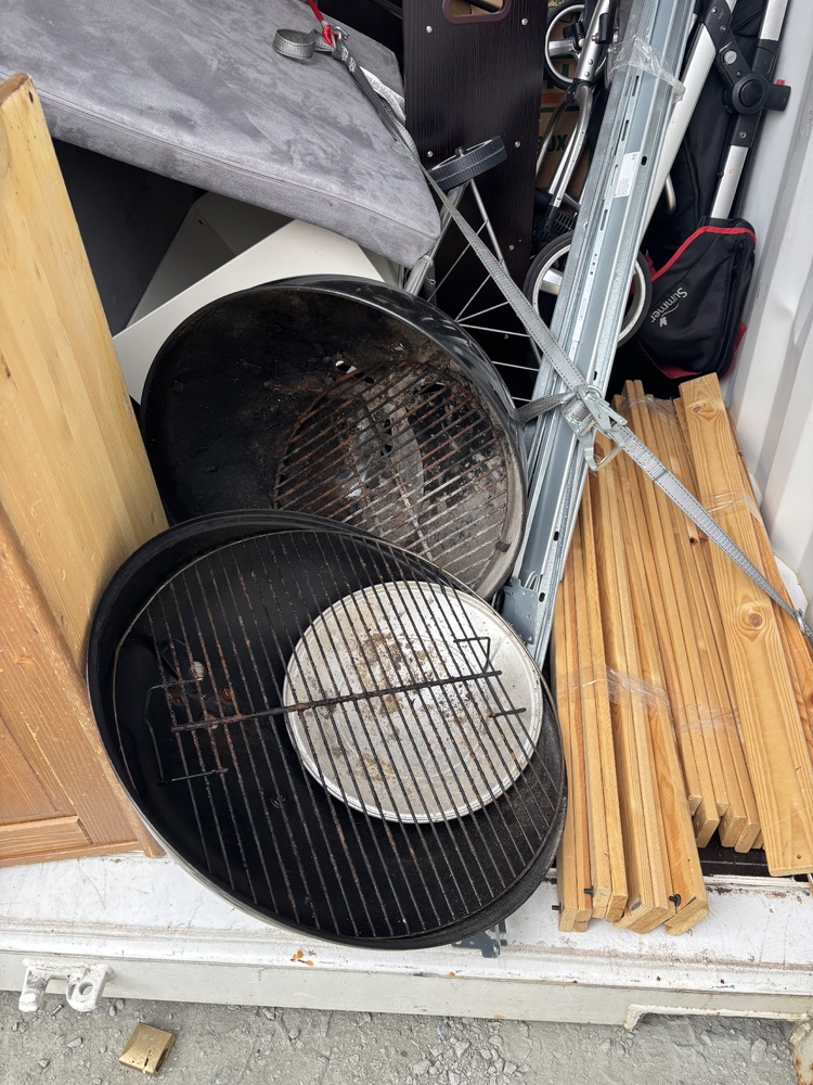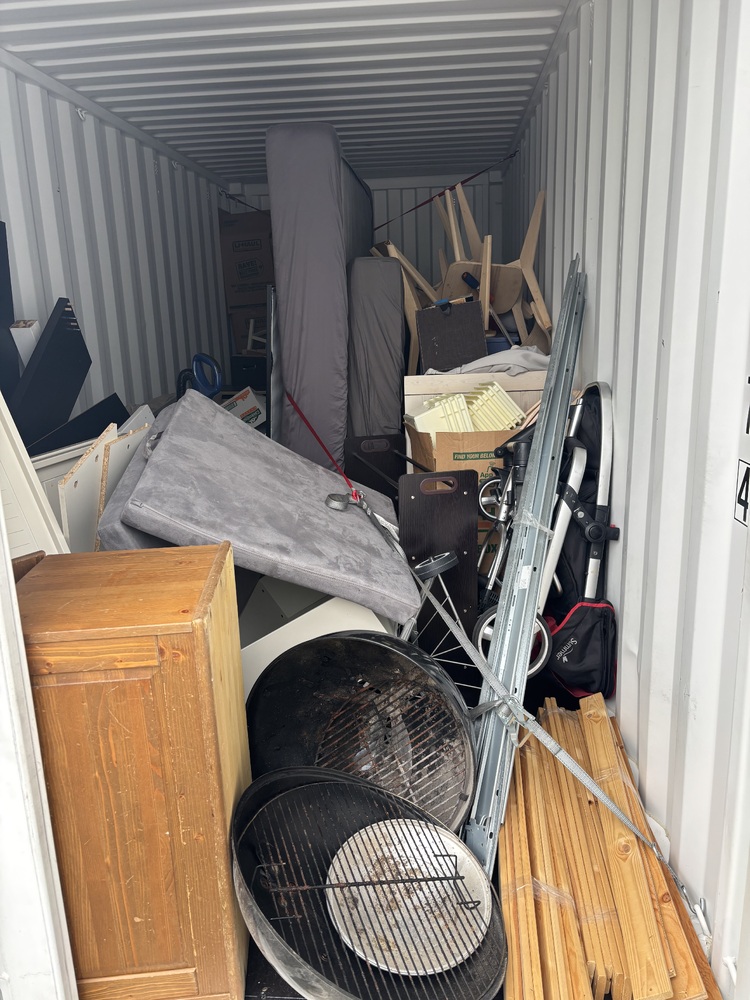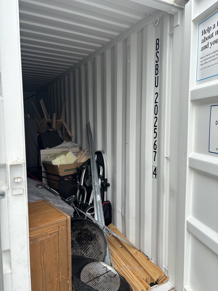 All items inside this BSB container are up for auction. Which is loaded with what we believe to be furniture, beds, a BBQ, and other miscellaneous items