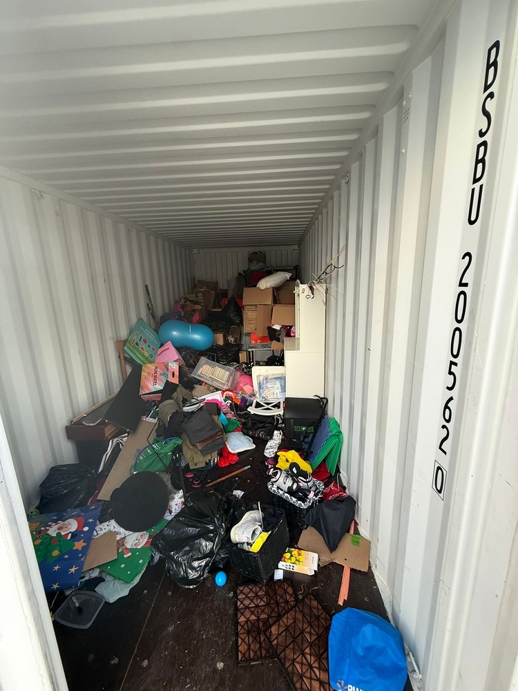 All items inside this 20' BSB container are up for auction. Which is loaded with what we believe to be clothing, furniture, household items, and other miscellaneous items