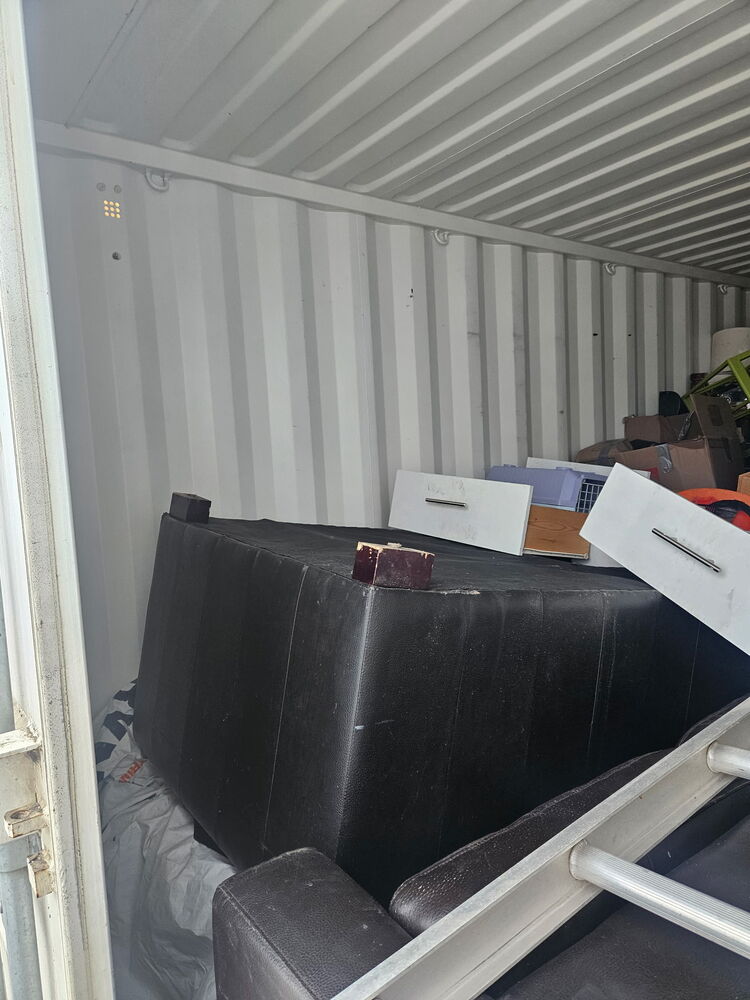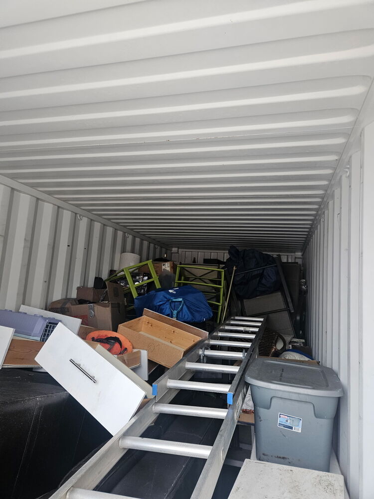 All items inside this 20' BSB container are up for auction. Which are loaded with what we believe to be a ladder, furniture, household items, and other miscellaneous items