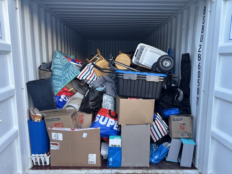 All items inside this 20' BSB container are up for auction. Which are loaded with what we believe to be a ladder, furniture, household items, and other miscellaneous items