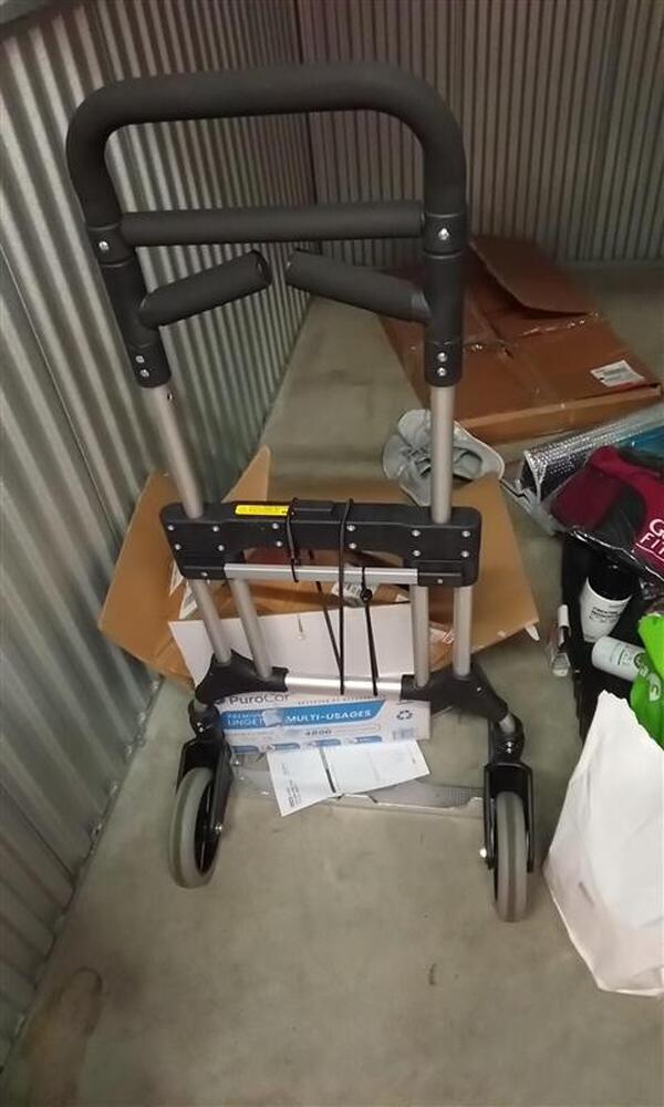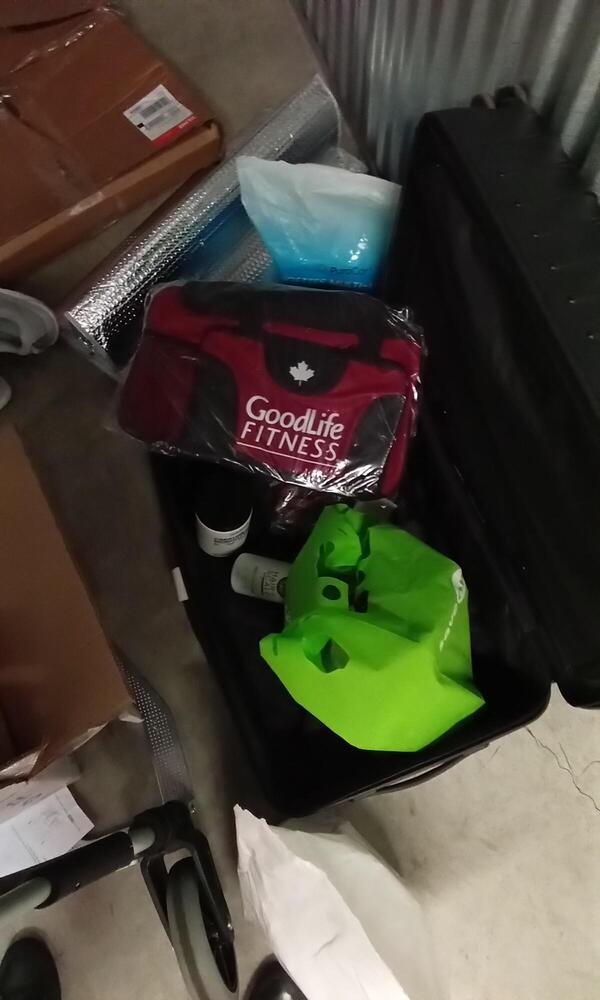 Boxes/ Totes, 2 Wheel Dolly, Running Shoes, Fitness Bag.