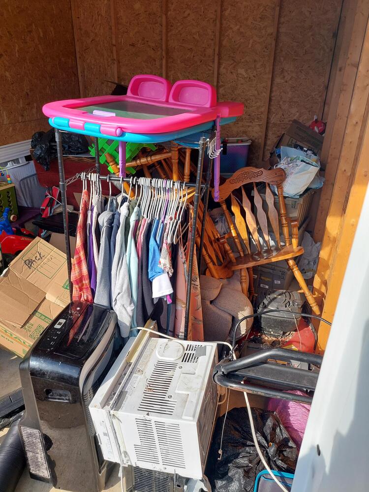 Furniture, Toys, Boxes, Totes, Clothes and A/C Units.