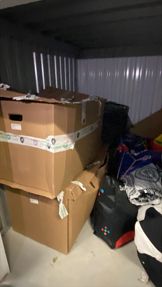 boxes , clothes , stereo audio equipement ,