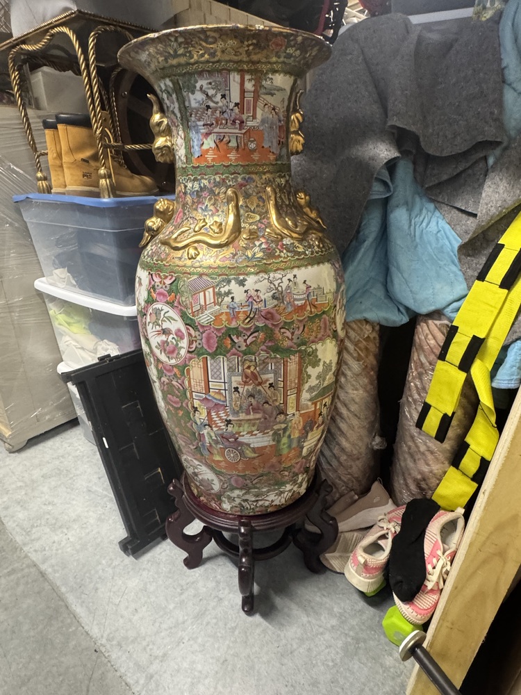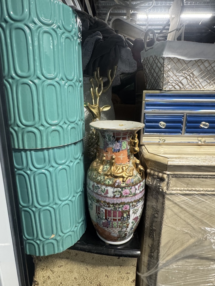 Antique, heirloom furniture (wardrobes, cabinets, etc); Antique vases; Clothing; Trampoline; Patio furniture; Nice area rugs; Leaf blower; Antique lamp; Jewelry box and contents; Other assorted items.