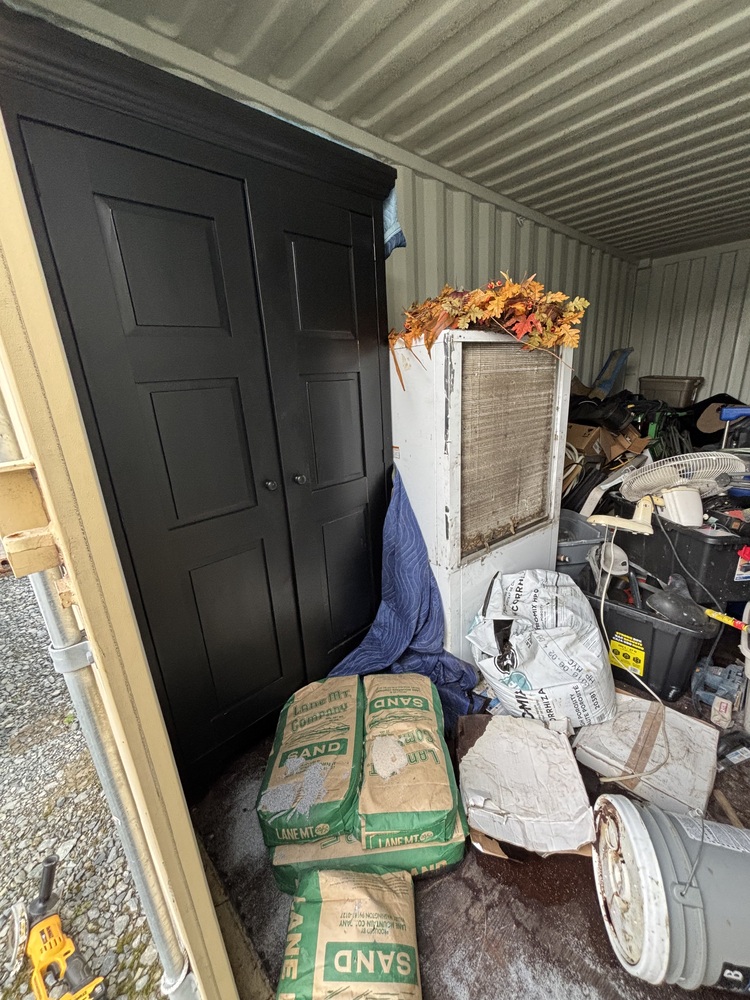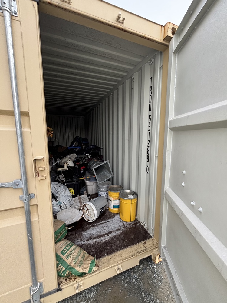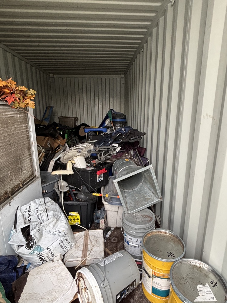 All items inside this 20' BSB unit are up for auction. Which is loaded with what we believe to be a cabinet, tools, totes, household items, and other miscellaneous items