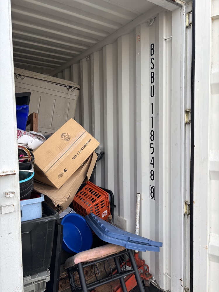 All items inside this 10' BSB are up for auction. Which is loaded with what we believe to be totes/boxes, a TV, household items, and other miscellaneous items
