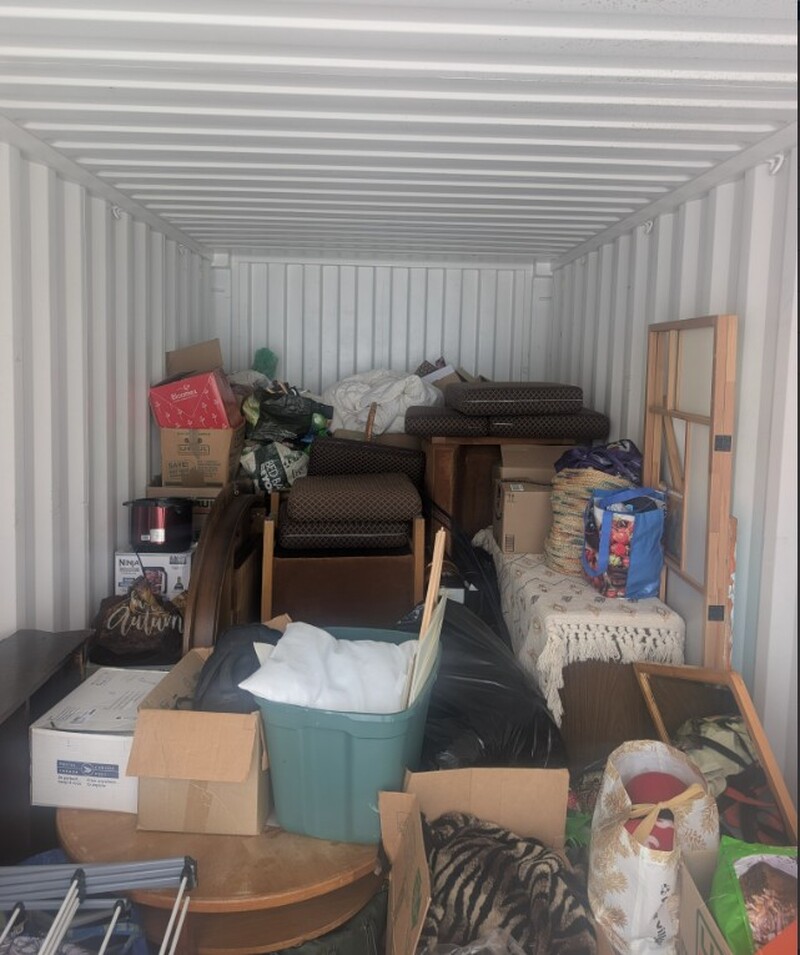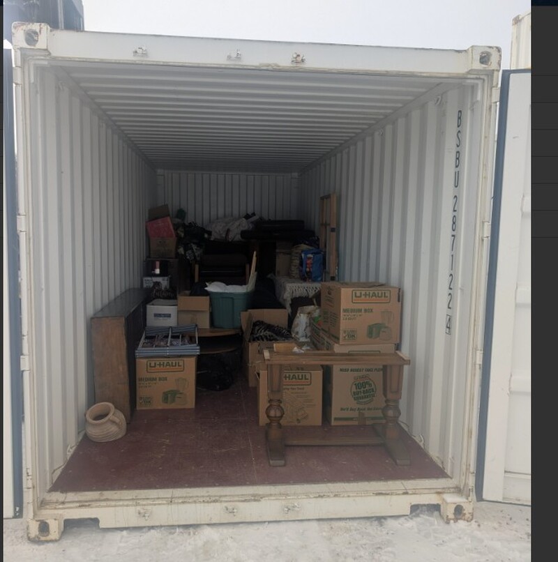 All items inside this BigSteelBox container are up for auction, which is loaded with what we believe to be boxes, totes, furniture and other miscellaneous items.