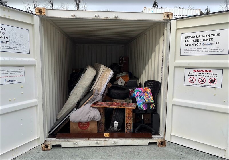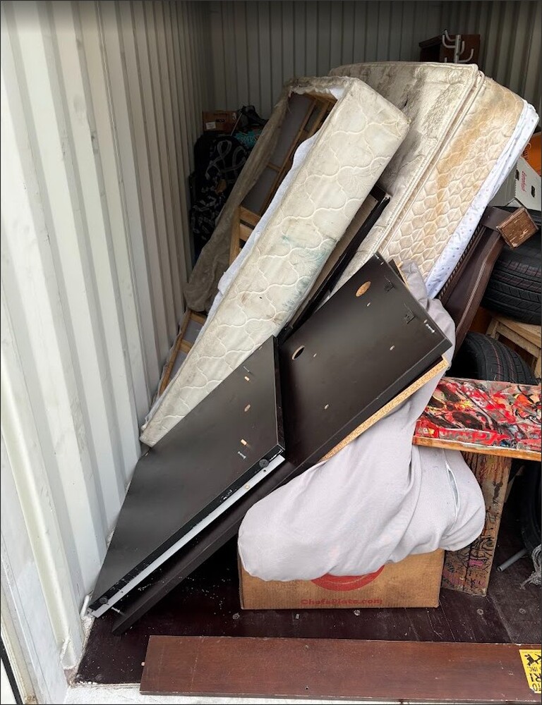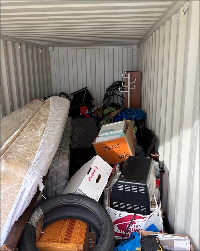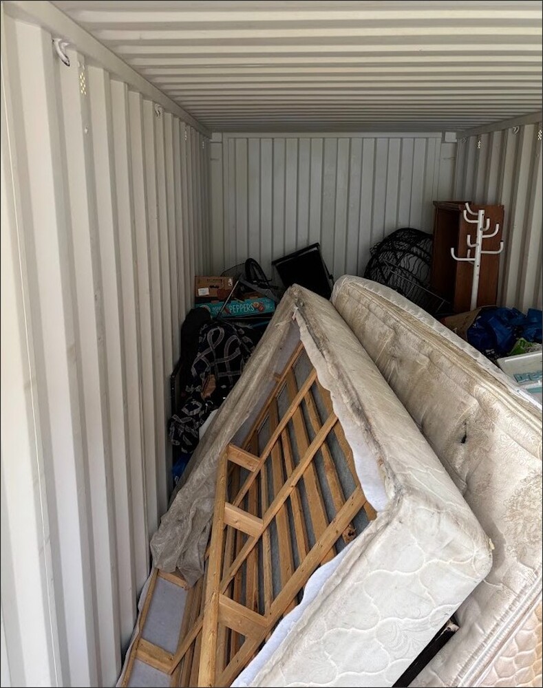 All items inside this 20' BSB are up for auction. Which is loaded with what we believe to be a mattress and box spring, furniture, a BBQ, a bike, and other miscellaneous items
