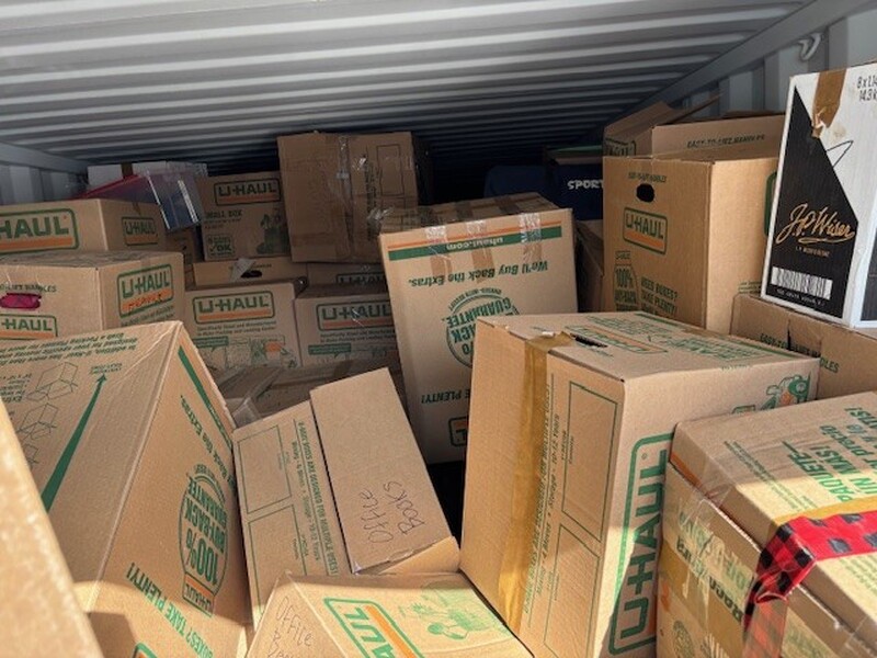All items inside this BigSteelBox container are up for auction, which is loaded with what we believe to be boxes, totes and other miscellaneous items.