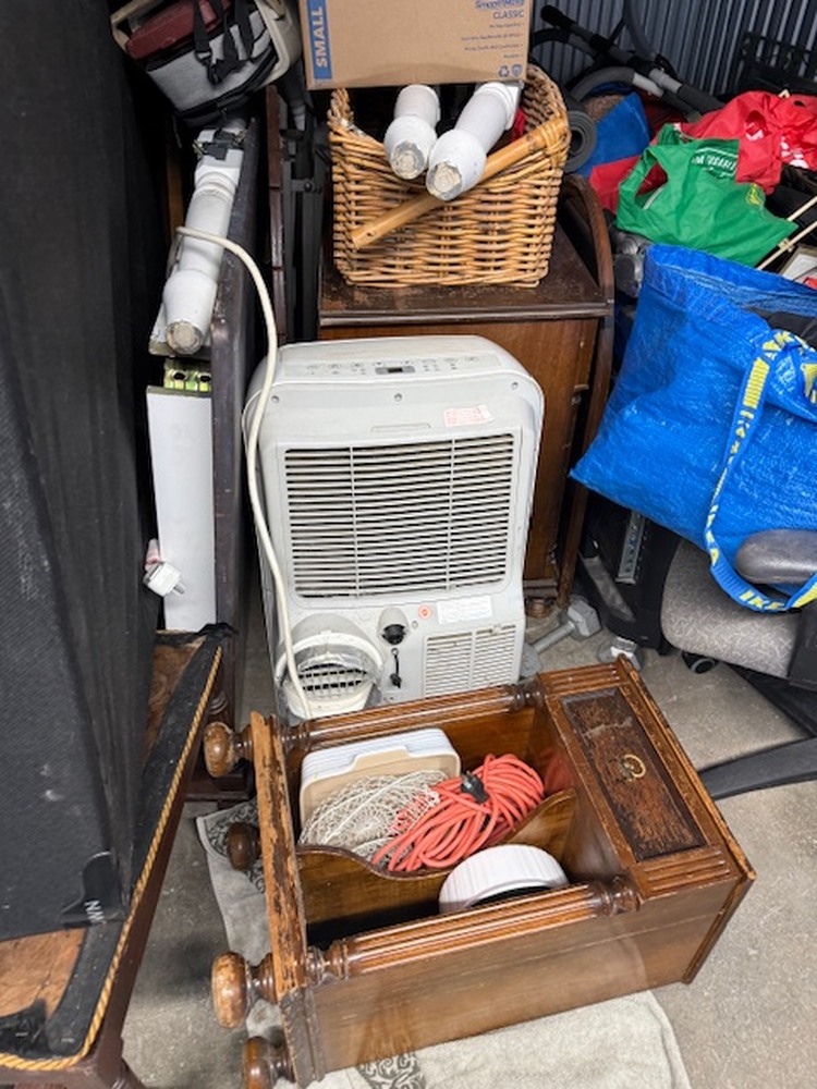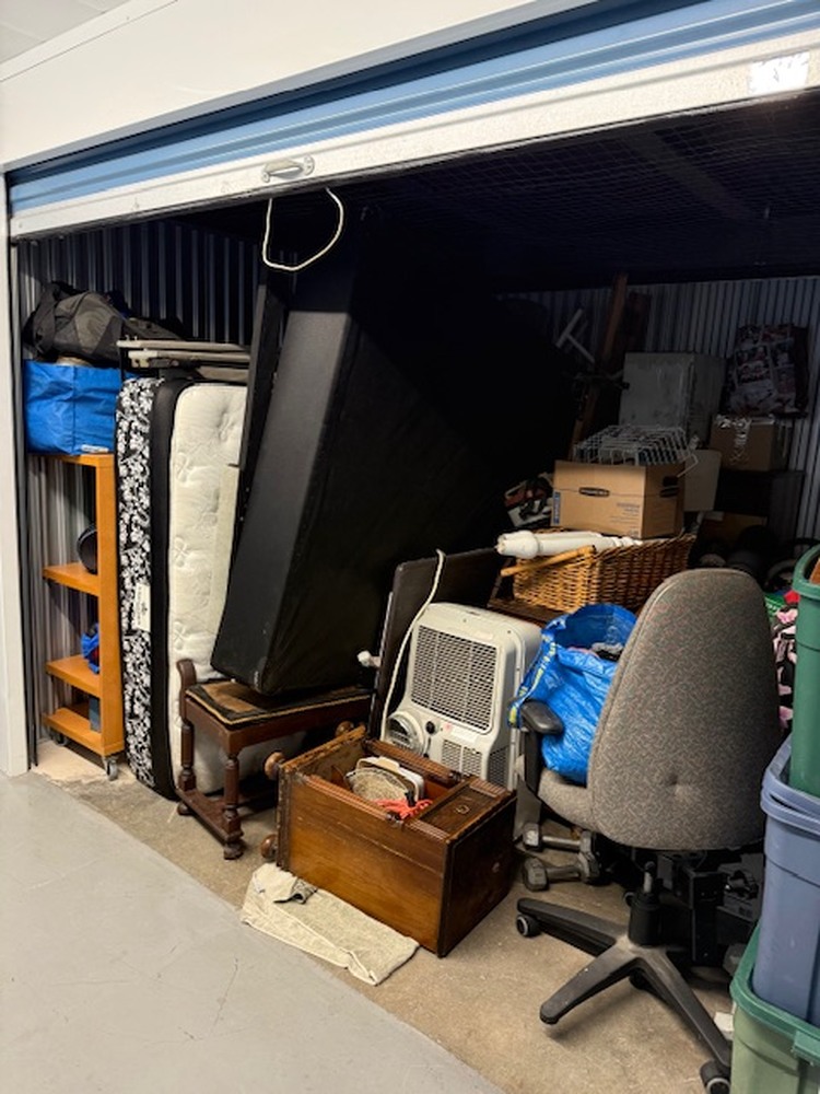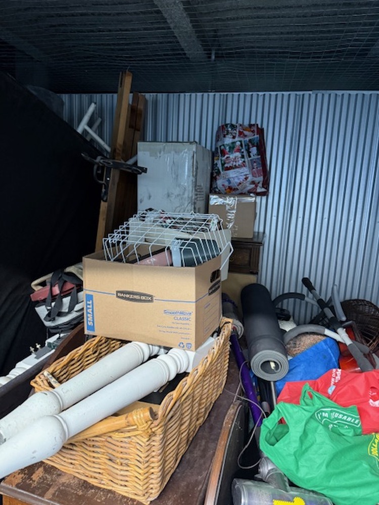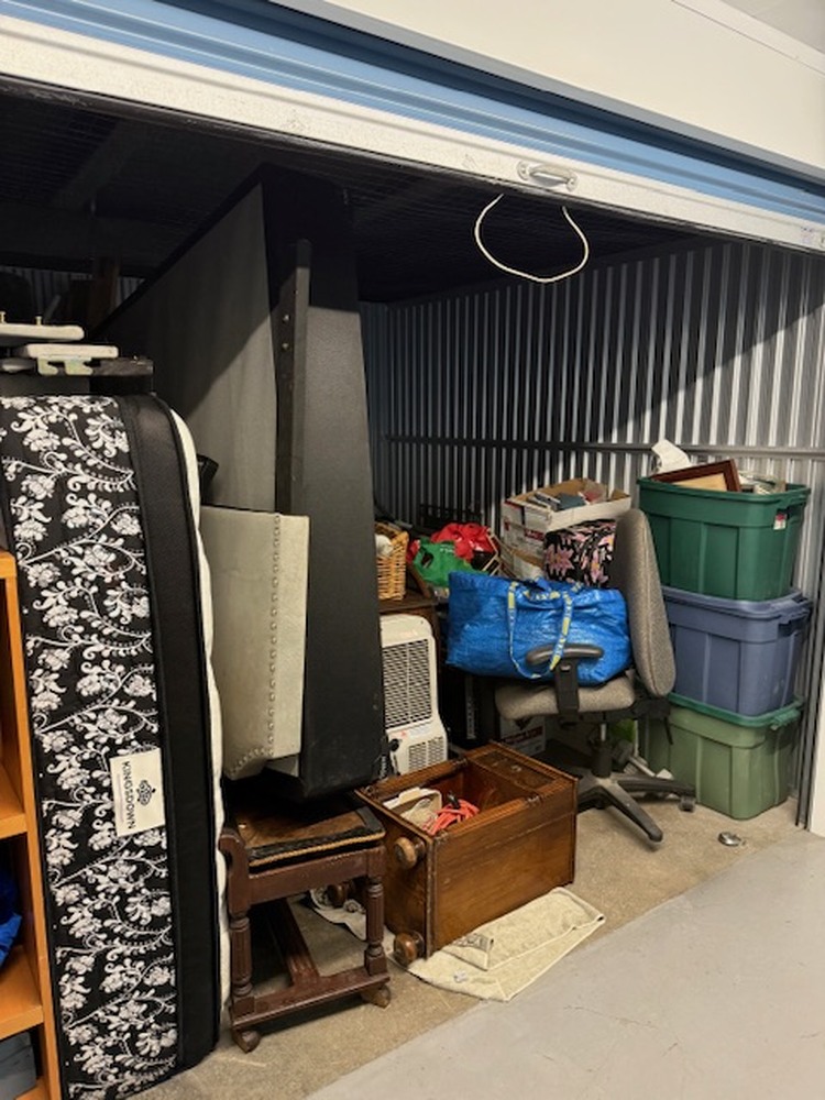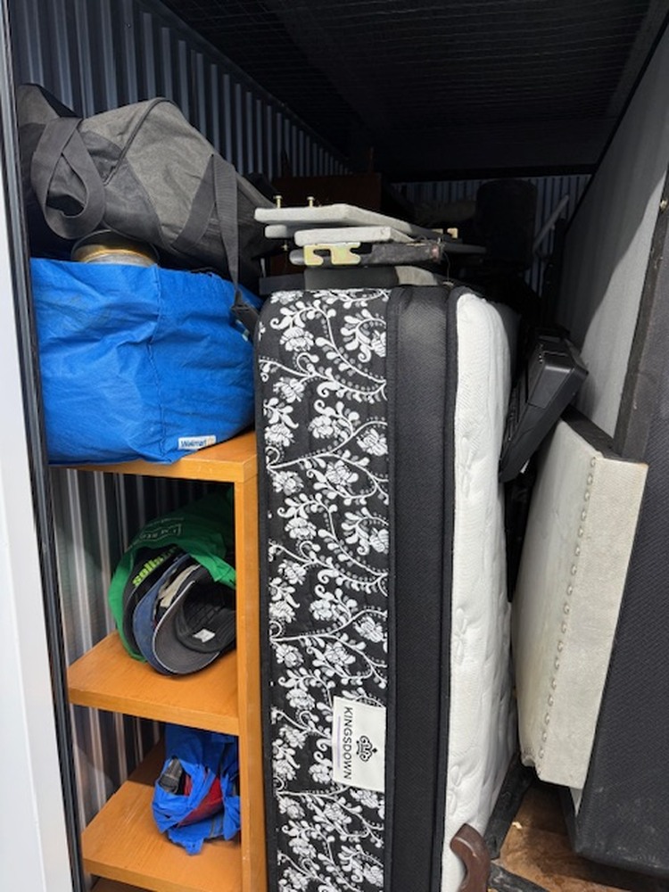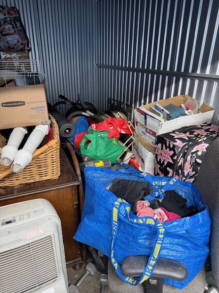 Unit contains furniture, mattress, AC unit, clothing, boxes, bags, ect. . .