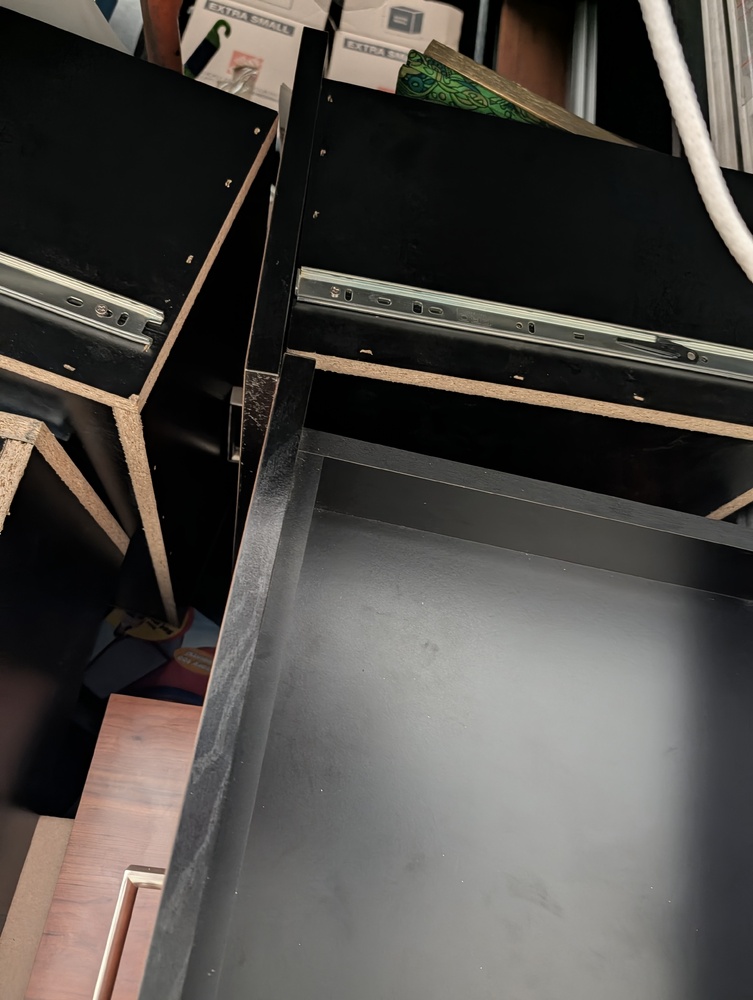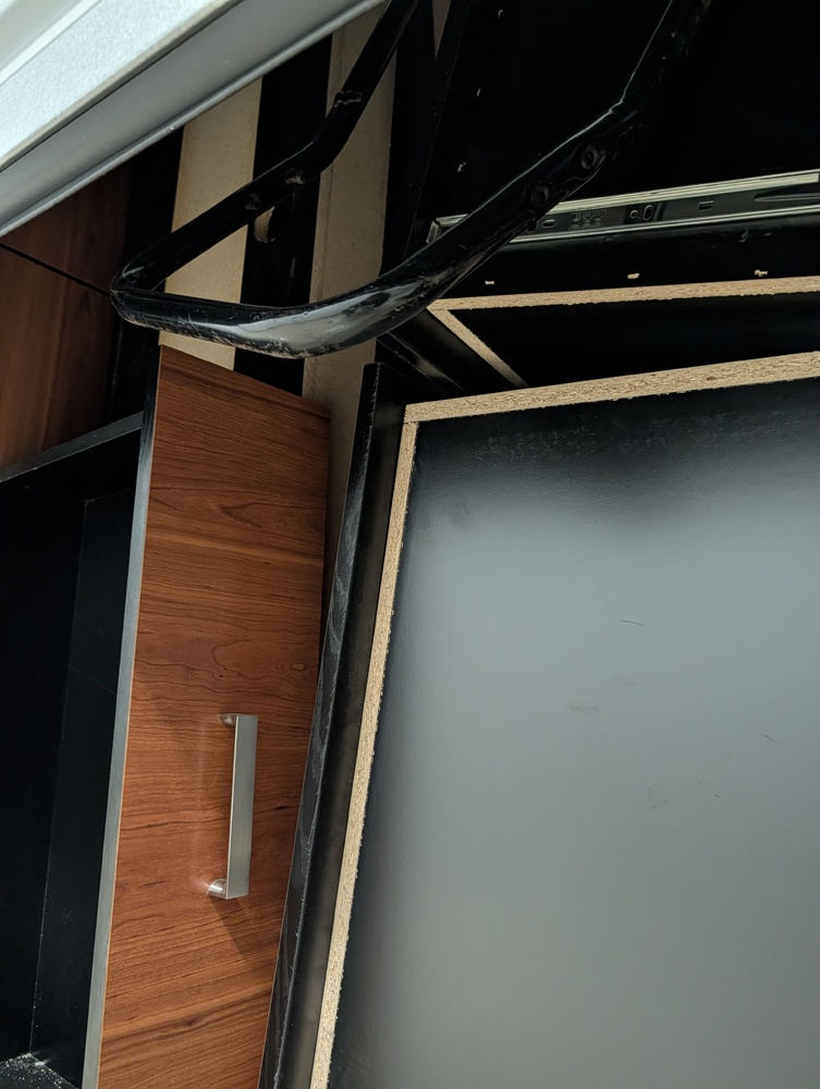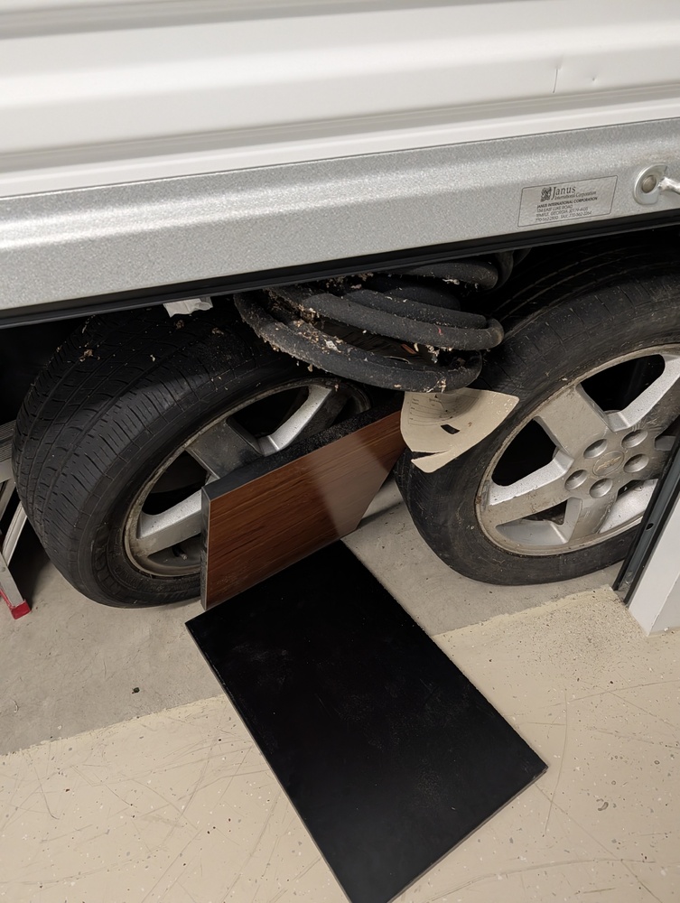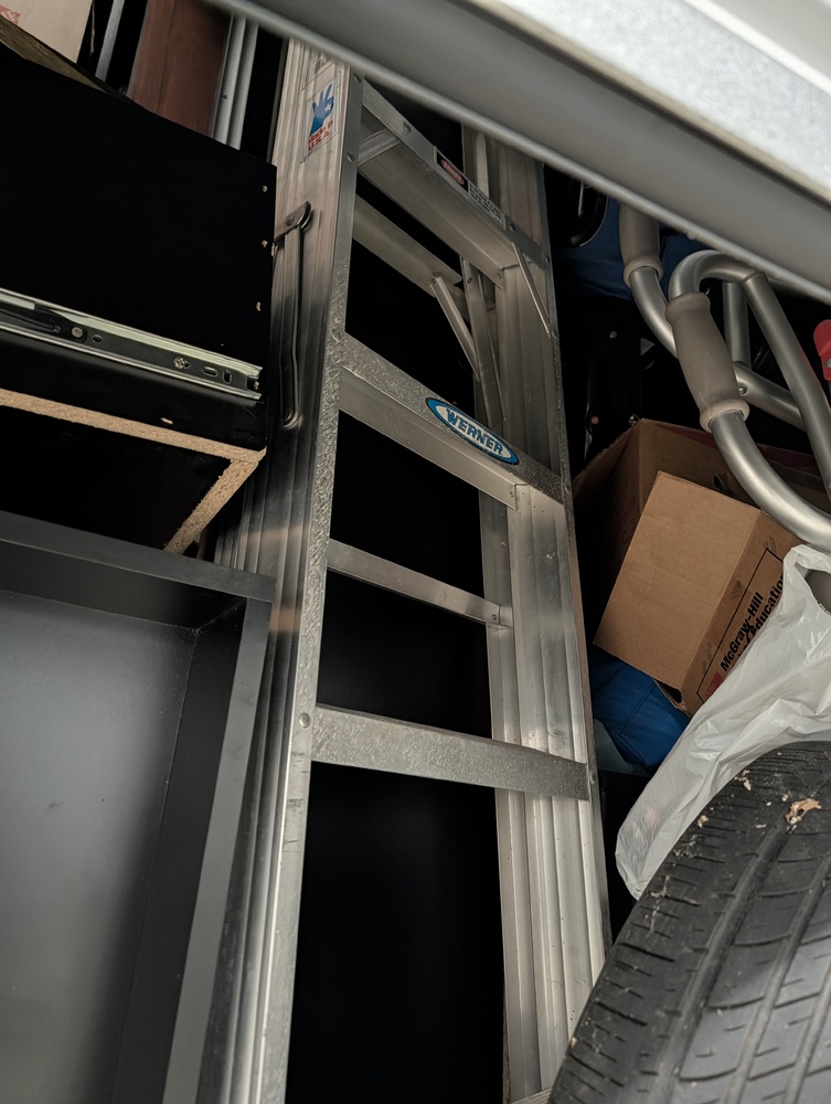 Tires, boards, ladder, desk or dresser, boxes, walker (couldn't open door all the way at lock cuts).