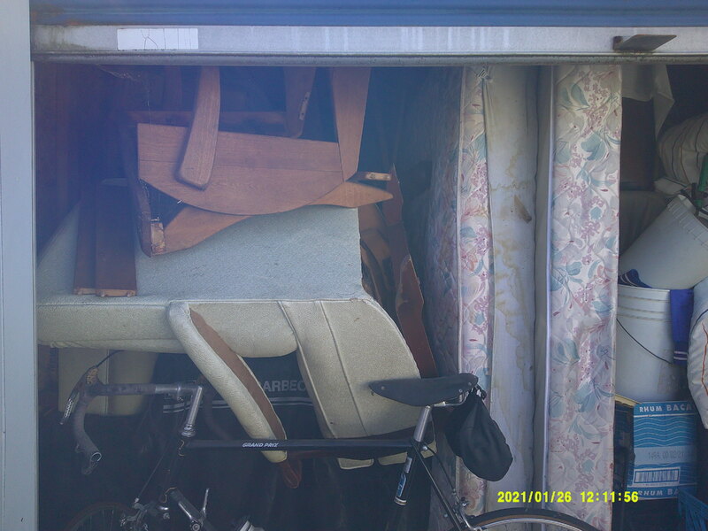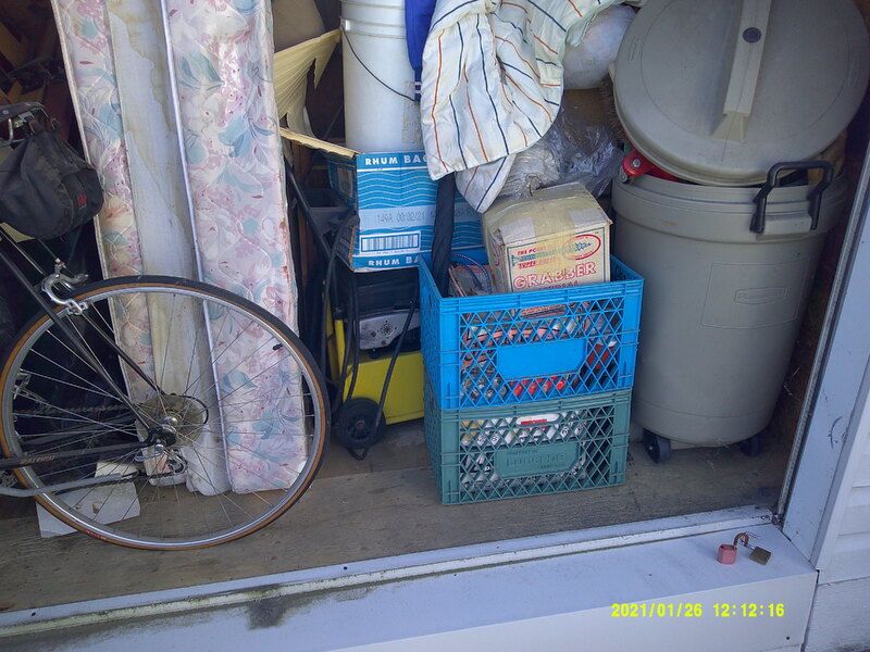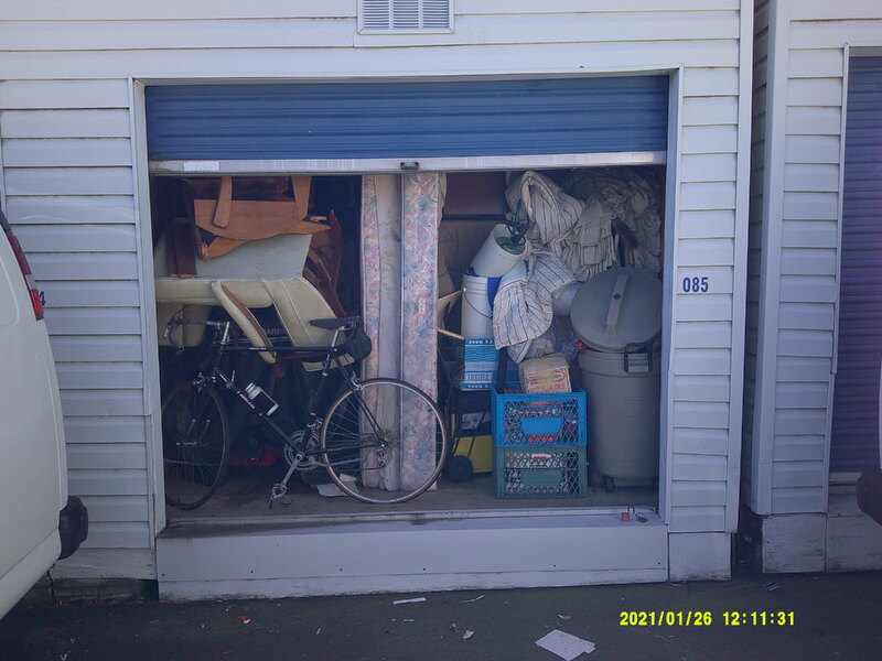 Unit packed full. Bicycle, rolling garbage can and other misc. items