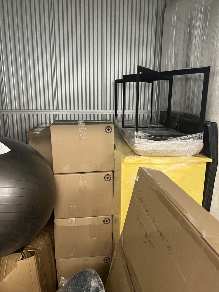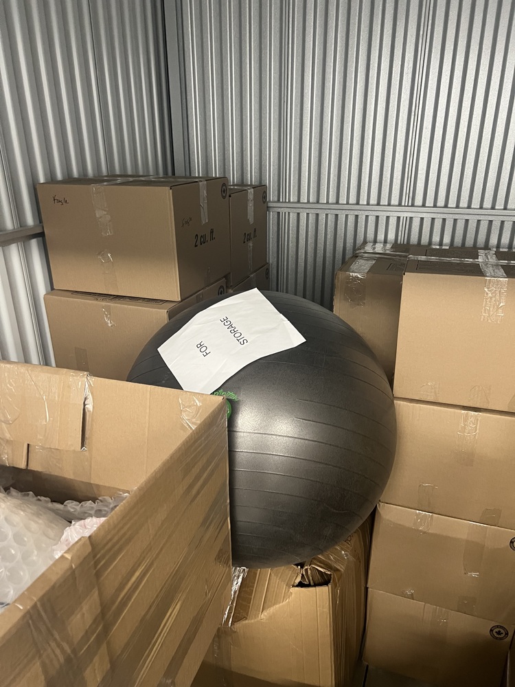 Cardboard Boxes, Cooler, Chair, Exercise Ball, Sofa