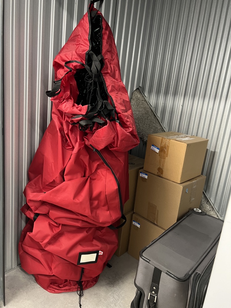 Christmas tree, Suitcase, Cardboard Boxes