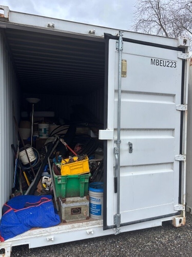 All items inside this BigSteelBox container are up for auction, which is loaded with what we believe to be furniture, garden tools, and other miscellaneous items.